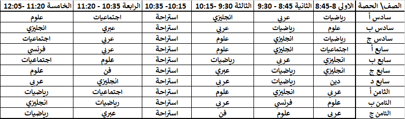 أولا : ينتهي الدوام لكل من يوم الثلاثاء ، الاربعاء ، الخميس (08 ، 09 ، 10-09-2020 ) م الساعة 12:05 ظهرا لجميع المراحل (الدنيا ،العليا،الثانوية) .