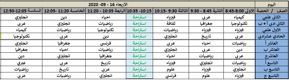 برنامج الدوام ليوم الاربعاء 16-09-2020 ..... تمديد الاغلاق.